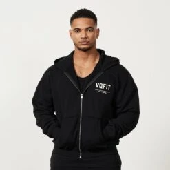 Vanquish VQFIT Distressed Print Black Full Zip Oversized Hoodie