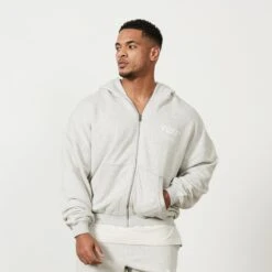 Vanquish VQFIT Distressed Print Oat Marl Full Zip Oversized Hoodie