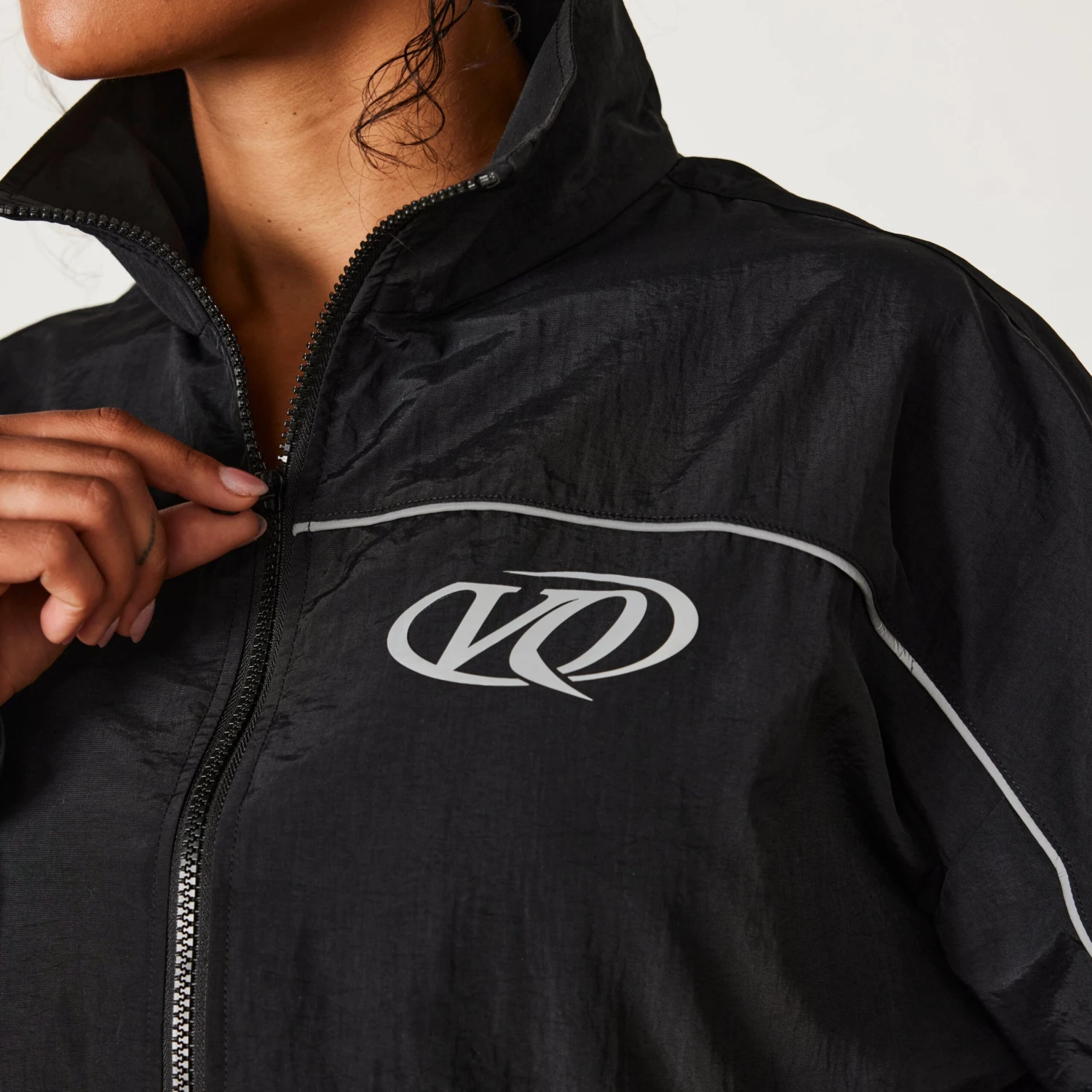 This brand new style of racing track jacket has reflective piping detail with a full zip and self fabric side pockets. This jacket comes in an oversized fit on the sleeves and body, with elastic at the hem and finished with reflective branding on both the front and back.