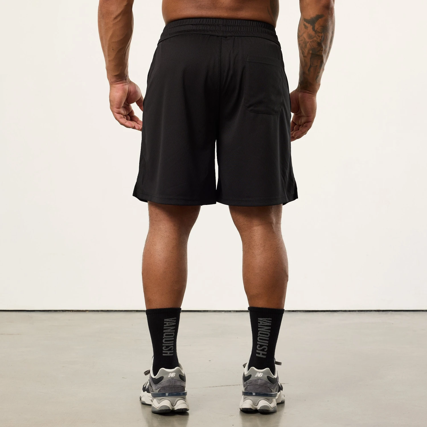 These mesh shorts are lightweight and breathable with bar tacked side splits to keep you secure during every movement. Featuring zip front pockets and a patch back pocket, our elasticated waistband with flat drawcords keeps this piece adjustable to your workout.