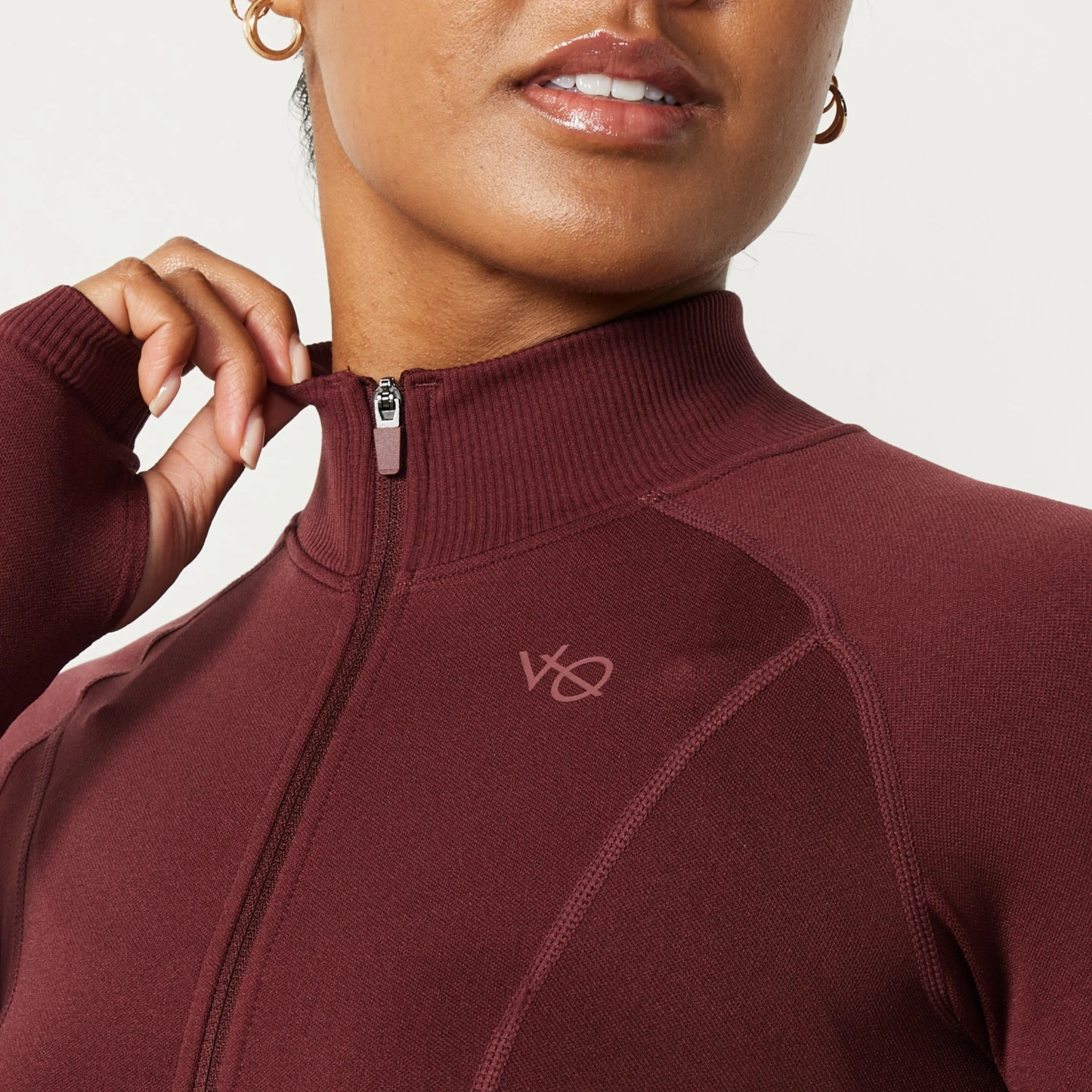 This all new style of track jacket features long raglan sleeves with thumb holes and a deep ribbed collar and waistband. With a super slim fit on the body and sleeves this is the perfect sculpting addition to your winter gym wardrobe, finished with a minimal VQ logo on the chest.