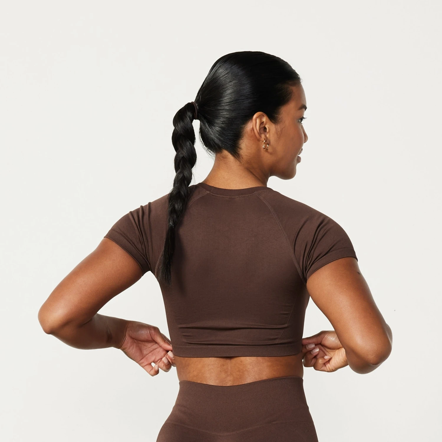 Vanquish Elevate Seamless Coffee Brown Cap Sleeve Cropped T Shirt