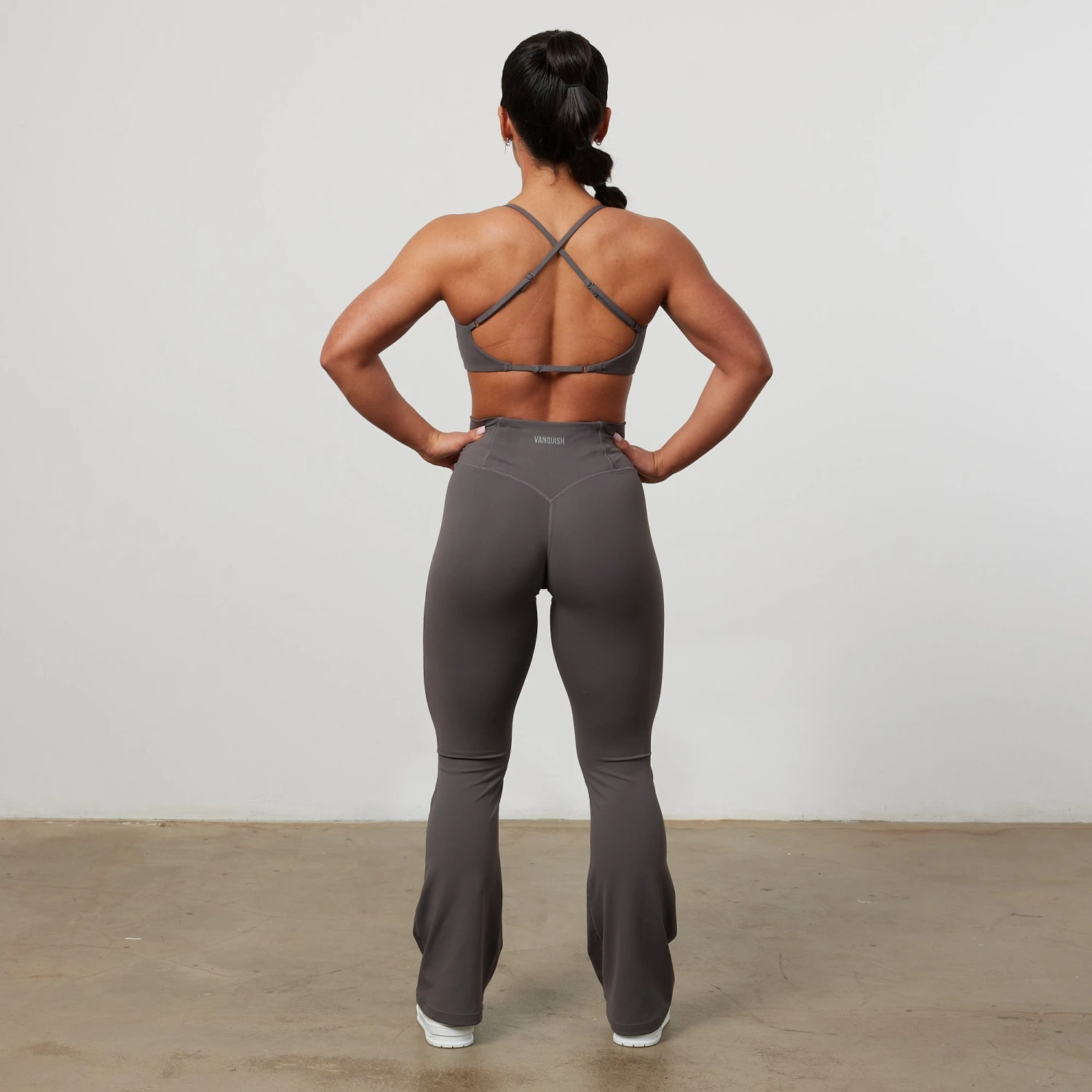 This backless bra features a double layer front with internal padding, adjustable strap across the back and cross over straps with adjustable ring and slider. Featuring a small, tonal printed logo at the center front.