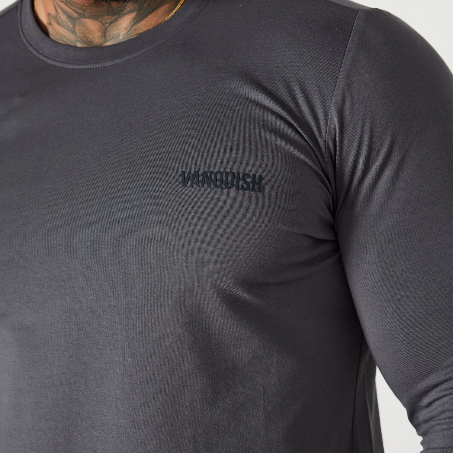 This long sleeved T-shirt has a tapered fit and forward shoulder seam made to hug the shoulders, chest and arms. Featuring a minimal Vanquish logo on the left chest and branded tab on the sleeve.