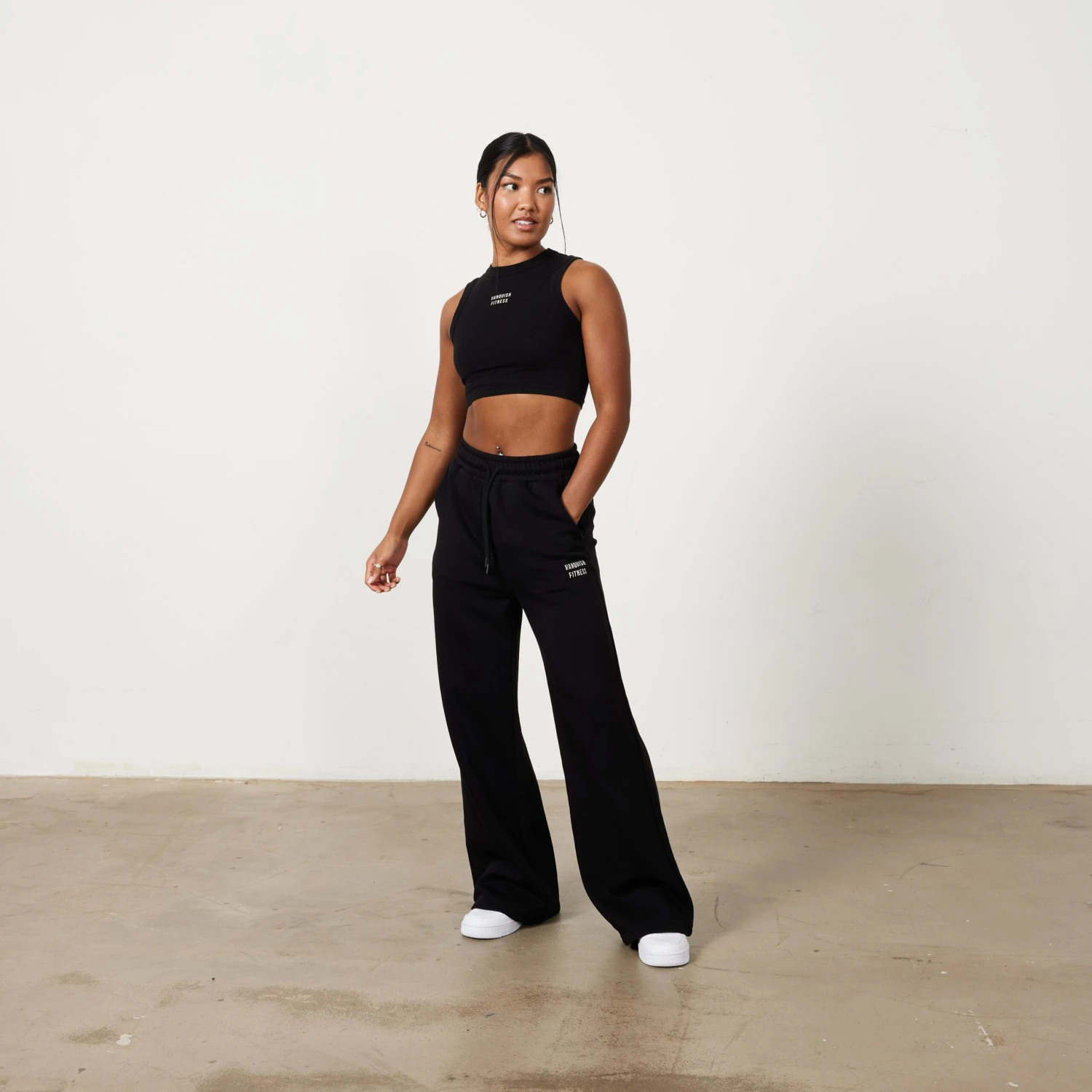 These sweatpants come in a wide leg fit, with an elasticated draw cord waistband and side and back pockets. Made in an ultra soft cotton blend, brushed fleece fabric, the front features a minimal style of printed branding on the left leg.