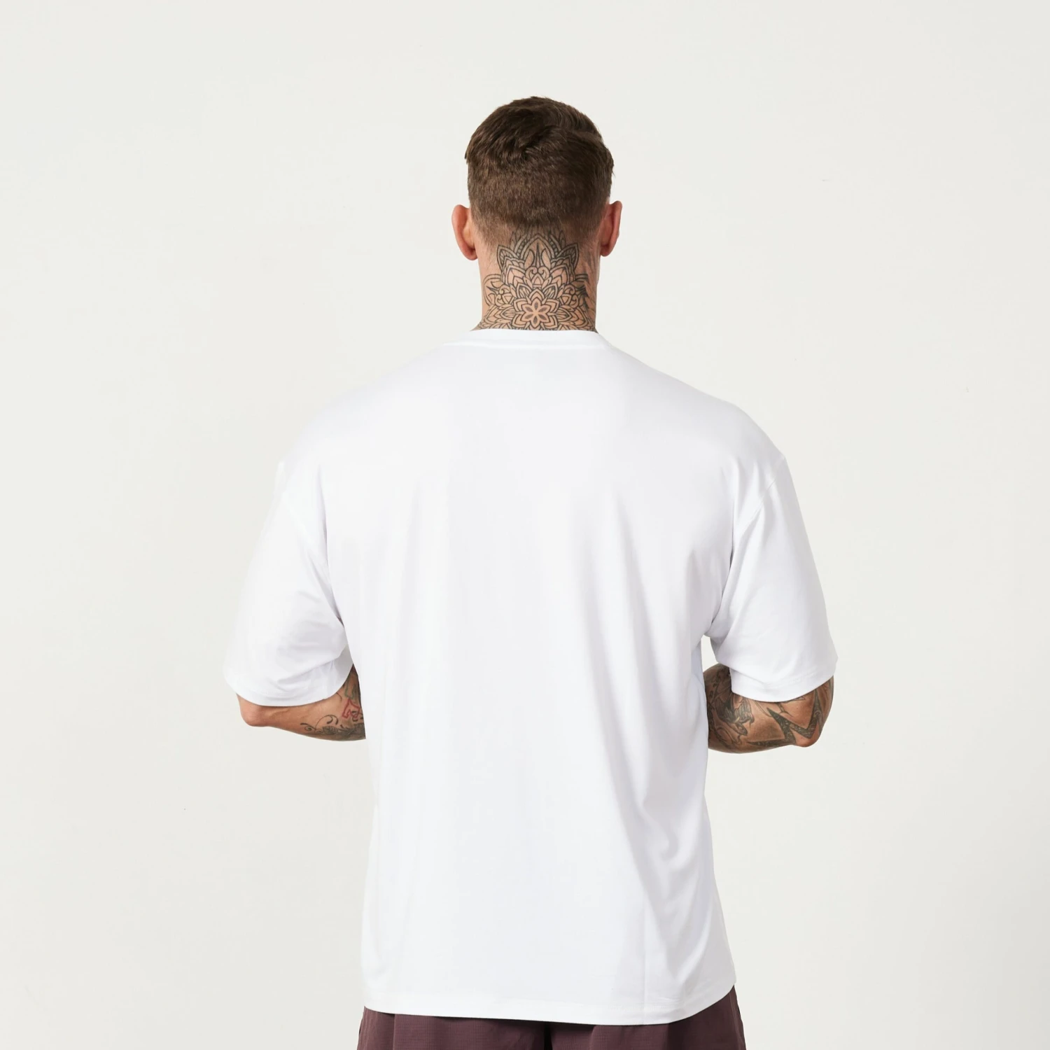 These t-shirts come in our classic oversized fit, with a deep ribbed collar and raised rubber branding on the left chest and outer sleeve.Â